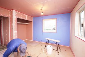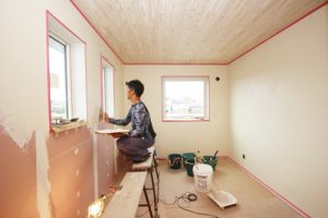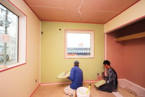 当社標準仕様の室内壁の塗り壁作業が始まりました(^^)