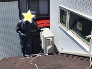 外から屋根上げのエアコン屋さんがハシゴから落ちてケガする話をたまに耳にします。