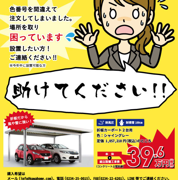 お客様から注文のあったカーポートの色品番を間違えてしまい、思いもよらない在庫になってしまいました。