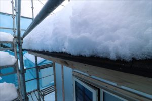 この地域は積雪1.5mです。長期優良住宅で構造計算もなっていますので安心です。でも1.5mも雪が積もったら嫌ですよね。さすがに雪下ろしをしないと心配です。