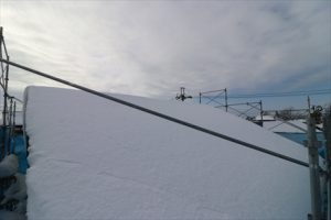 写真をよく見ると屋根材と雪の間から溶けているのが分かります。下から溶けて流れ落ちていきます。詳しいことが分からないので不思議に見えちゃいます!