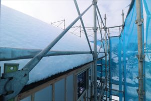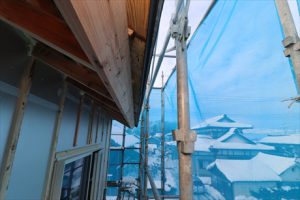新築現場は年末のうちに職人さんの頑張りで屋根が葺き終わっています。