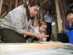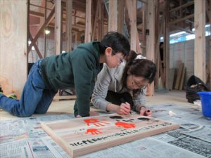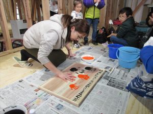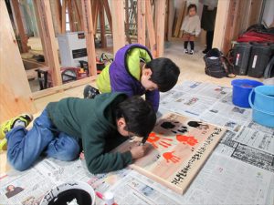 思いを込めて手形を押して一生に一度の家づくりを祈念して思い出づくりに励みましたよ\(^o^)/
