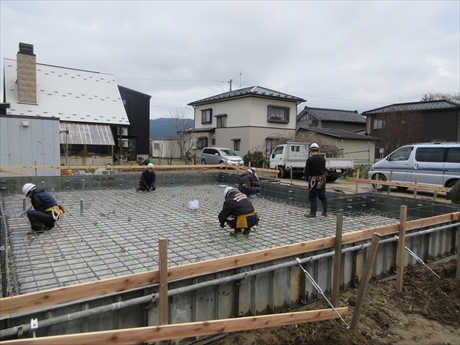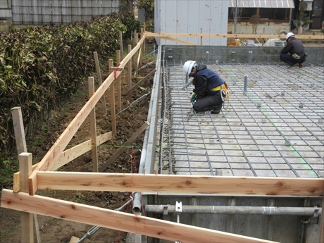 時と場合によっては下の写真のように鉄筋屋さんに配筋工事をやってもらう場合もあります。