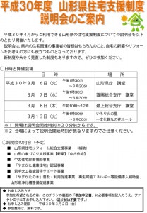 平成30年度の【山形県住宅支援制度説明会のご案内】が届きました。