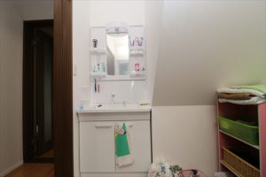 LDKは今までと同じ位置ですが、今までお風呂だったところにトイレを配置。洗面脱衣室だったところを通路に。トイレ給湯室だったところにお風呂を。階段下収納と廊下だったところを洗面脱衣室にとあちこち移動させる大規模リフォームになりました。