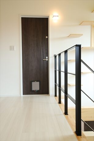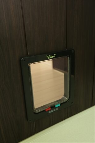 ペットが自分で通り抜けができるペット専用ドアが付いたドアや