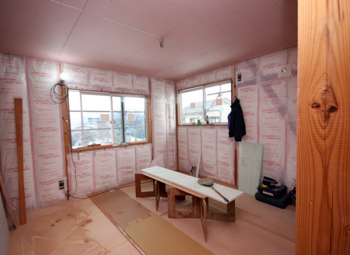 壁にパンパンに入った断熱材ハウスロンZERO105mmが暖かそうです! 寒い暑いも和らいでゆっくり過ごせそうですね~!(^^)!