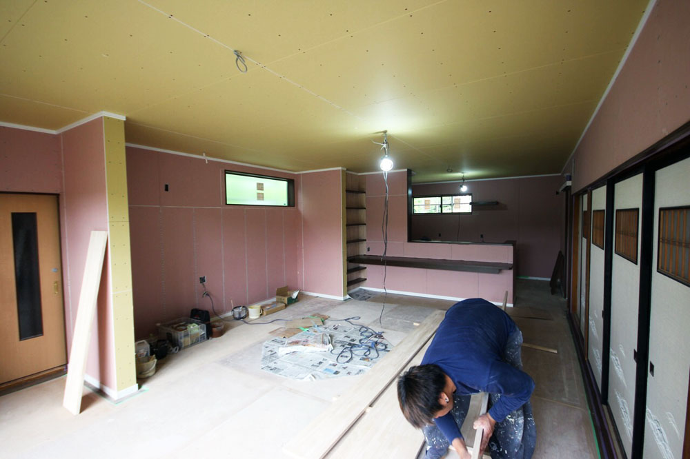 S様邸のリフォームは住みながら工事をしている為、毎日の工事の変化が確認できて楽しいようです。