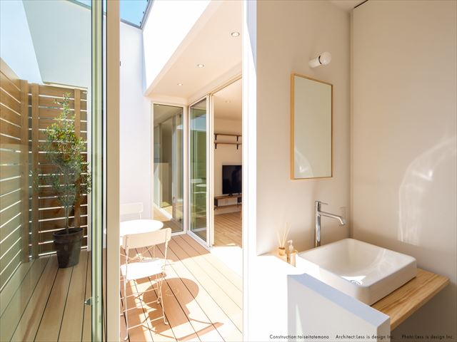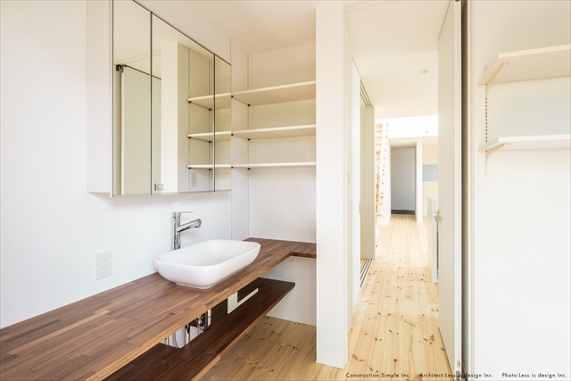 朝シャワーの家族がいる場合でも、来客がある場合でも、洗面室と脱衣室を別々にしておけば、誰もが使いたい時に使えます。