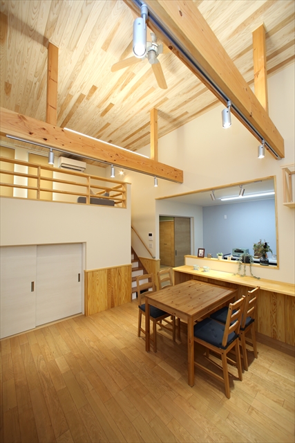 最下部の床面から屋根までの空間の中に、中間階を設けることで、