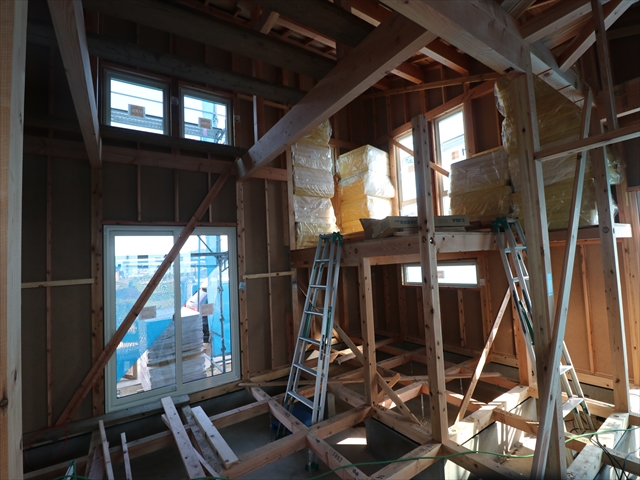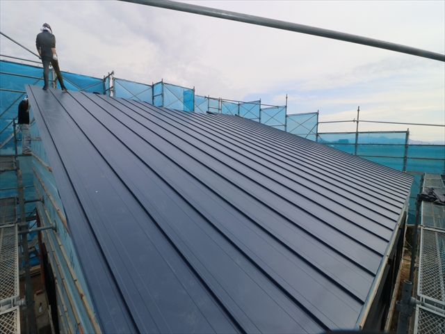 天候にも恵まれて晴れ間続きで作業もはかどり、外壁下地は完成しています。
