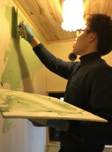 塗り壁塗ってから逆に杉の香りが吸収されたかのように控えめな香りになった感じです。