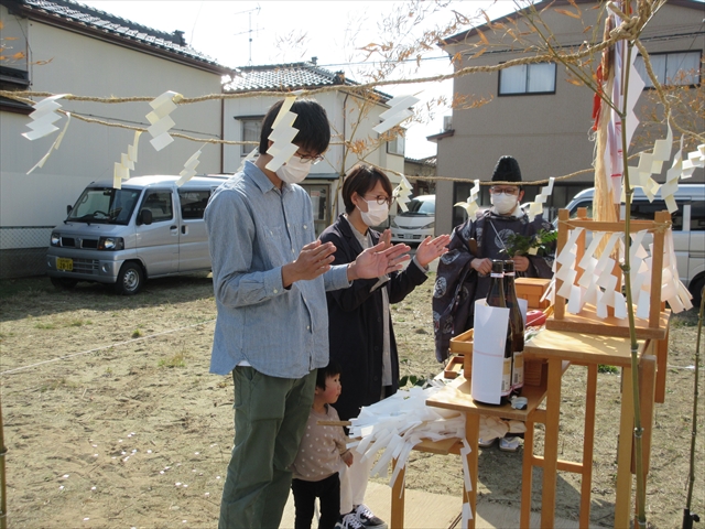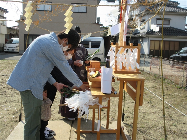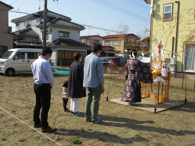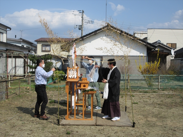 土地を清めていただき、工事の無事進行を祈願いたしました。