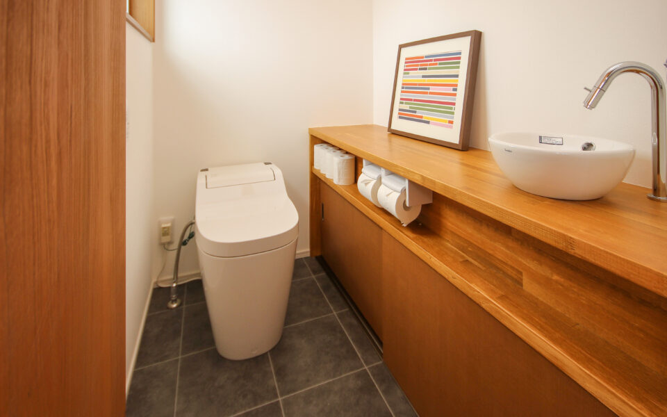 タンクレスのデザインが気に入ったけどコストは抑えていきたい、停電時の備えも欲しい場合は、1階のよく使うトイレをタンクレスに、主に家族が使う2階のトイレをタンク式にする選択もあります。