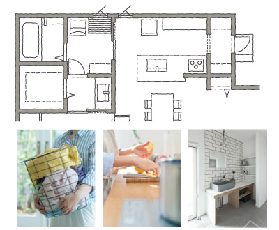 家事を助ける便利な設備、家事がしやすい導線、家がスッキリ片付く収納。 家事をラクにする工夫が「KAJITORU」にはたくさんあります。