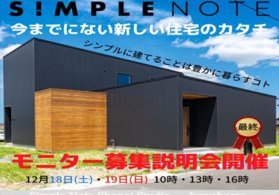 今までにない新しい住宅のカタチ【Simple note】モニター募集説明会開催します!2021.12.18~2021.12.19