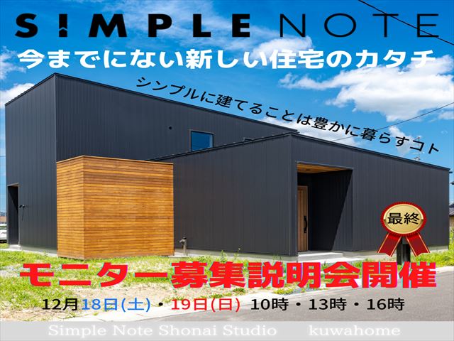 今までにない新しい住宅のカタチ【Simple note】モニター募集説明会開催します!2021.12.18~2021.12.19