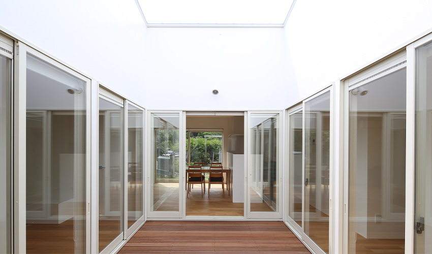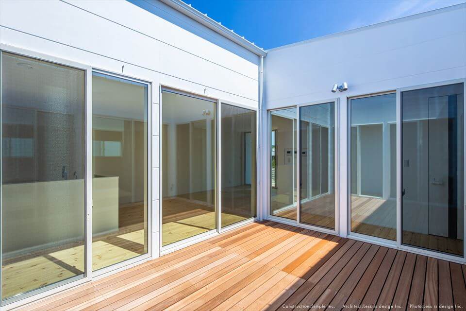 その侵入経路を断つことで、防犯性能は格段に上がります。 窓のある家、窓のない家、侵入犯がどちらを選ぶかは明確です。 外側に窓がなく中庭のある家をつくる事で、コストカットしながら防犯性能を上げる事ができるのです。