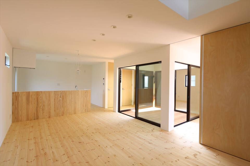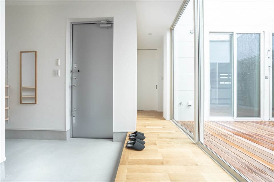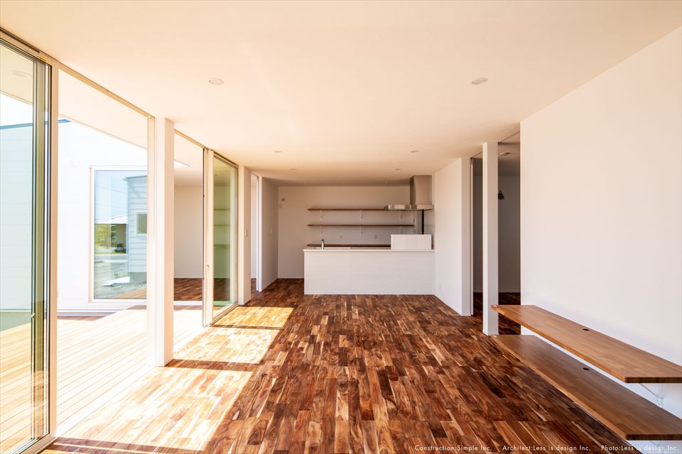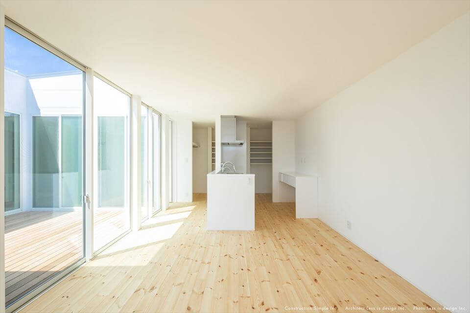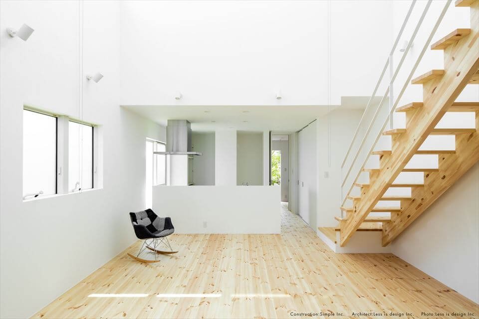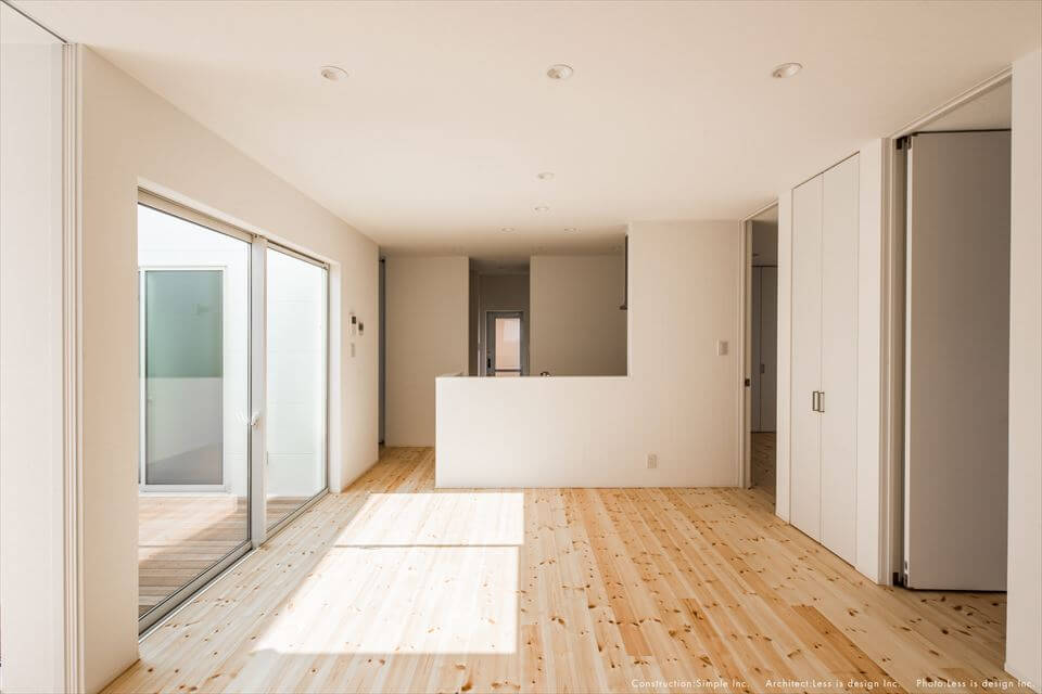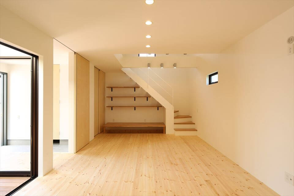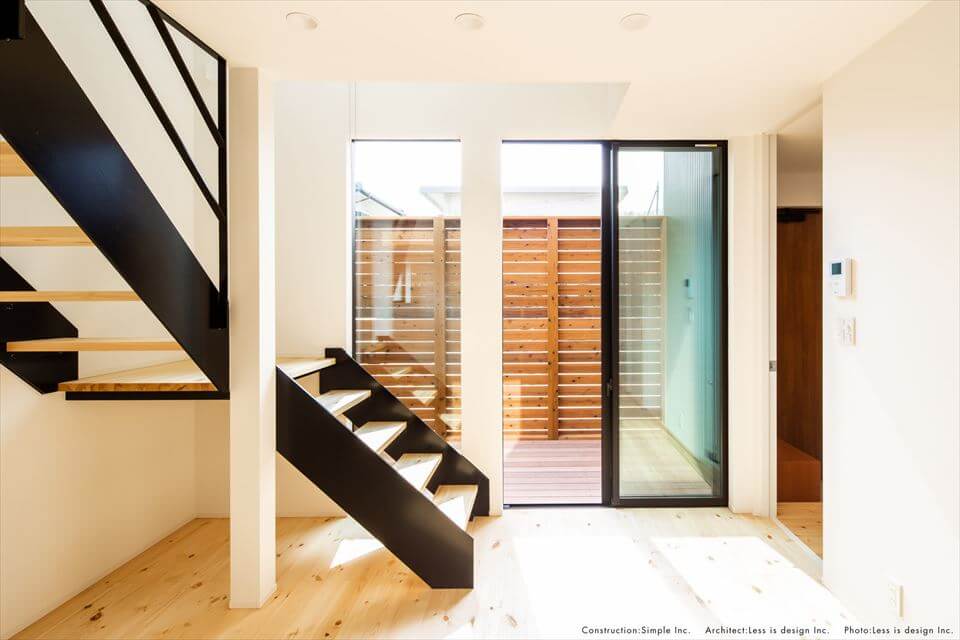 SIMPLE NOTEでは、外からの視線が入り込む道路面や隣接する家がある方向にむやみに大きな窓を作ることはしません。そうすることで、外からの視線を気にすることがなくなり、同時にカーテンや雨戸の出費を抑えます。